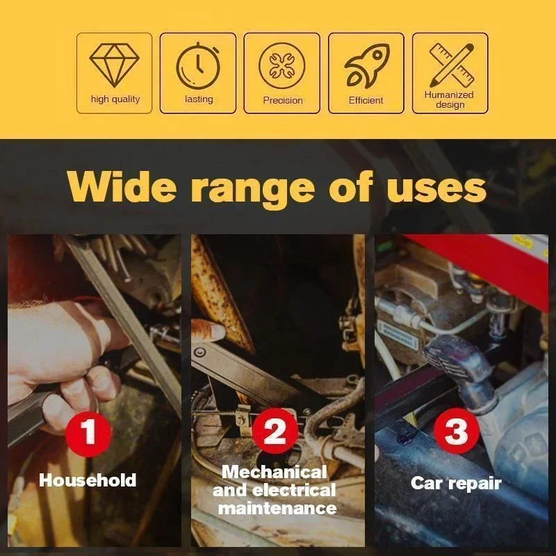 Универсальный Удлинительный ключ позволяет достигать углов, которые раньше не работали, позволяя трещотке качаться достаточно, чтобы обеспечить плавность и эффективность работы. Особенно рекомендуется для использованияДомашнее, механическое, электрическое обслуживание, ремонт автомобилей, ВключаяУкрашение для дома.