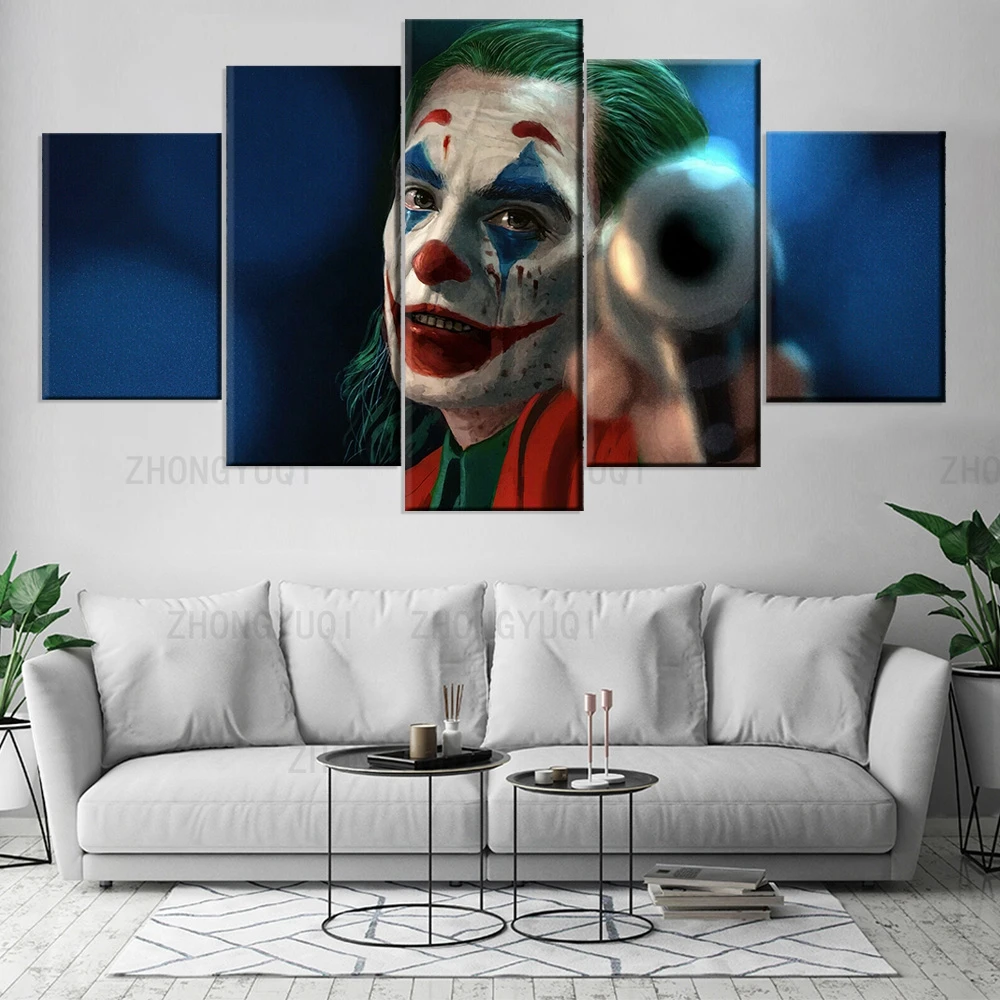 Картина на холсте с изображением Джокера, 5 панелей, настенный Декор для дома, Модульная картина в ночное время, постеры и принты для гостиной