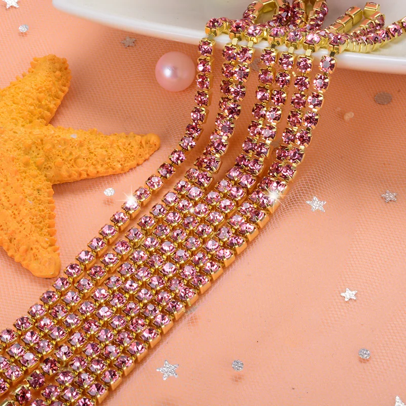 Золото и цепочки с кристаллами с серебрянной акантовкой, пришиты стразы s цепочка DIY камни и кристаллы для рукоделия и блестящим декоративным бриллиантом камни для ювелирных изделий Стразы