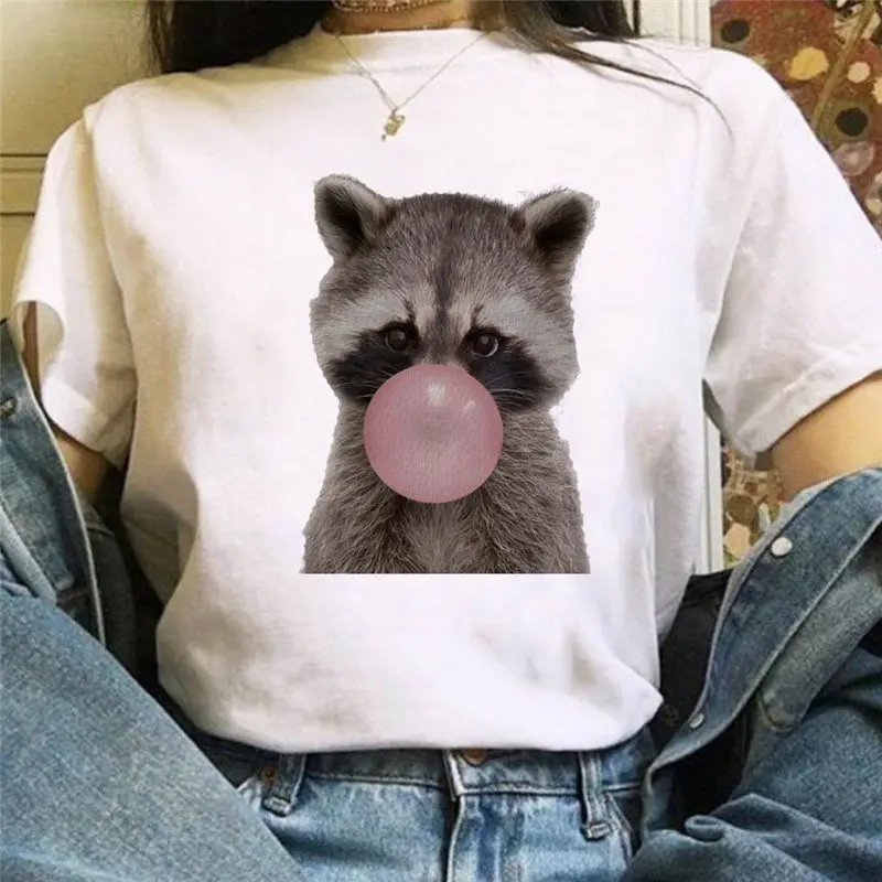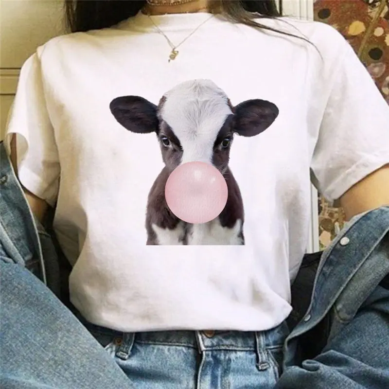 Летние женские футболки с рисунками из мультфильмов футболка с мультяшным жирафом футболки 90s Ullzang Harajuku корова свинья кролик Тигр Ретро футболка с принтом для девочек