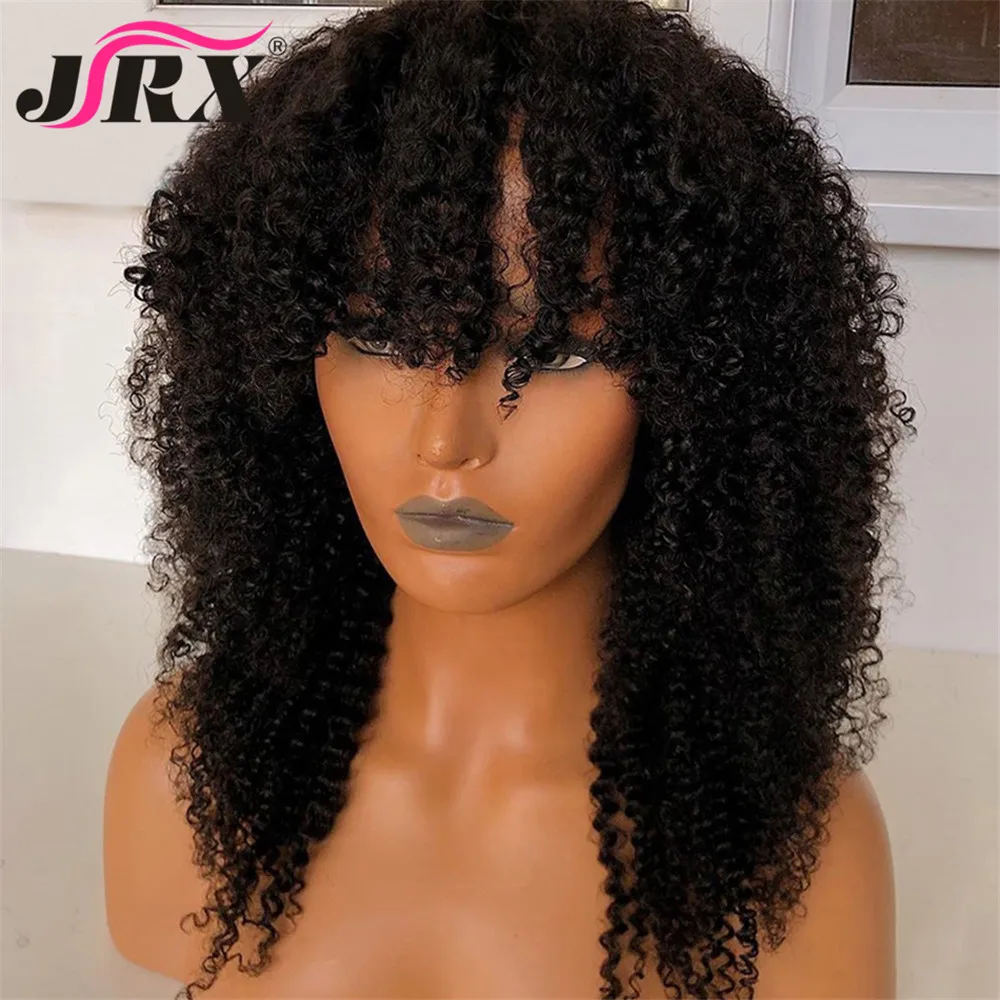 Парики из натуральных кудрявых волос Jerry с челкой для чернокожих ...