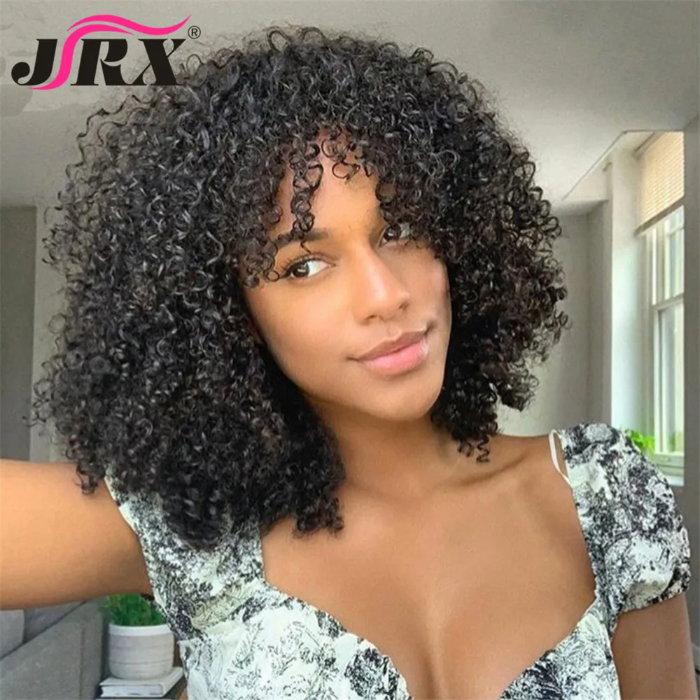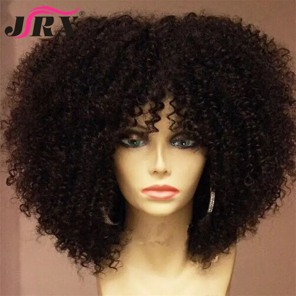 Афро кудрявый парик с челкой полная машина сделал Короткие вьющиеся человеческие волосы парики для женщин бразильские волосы Remy 3B 3C парик с бахромой