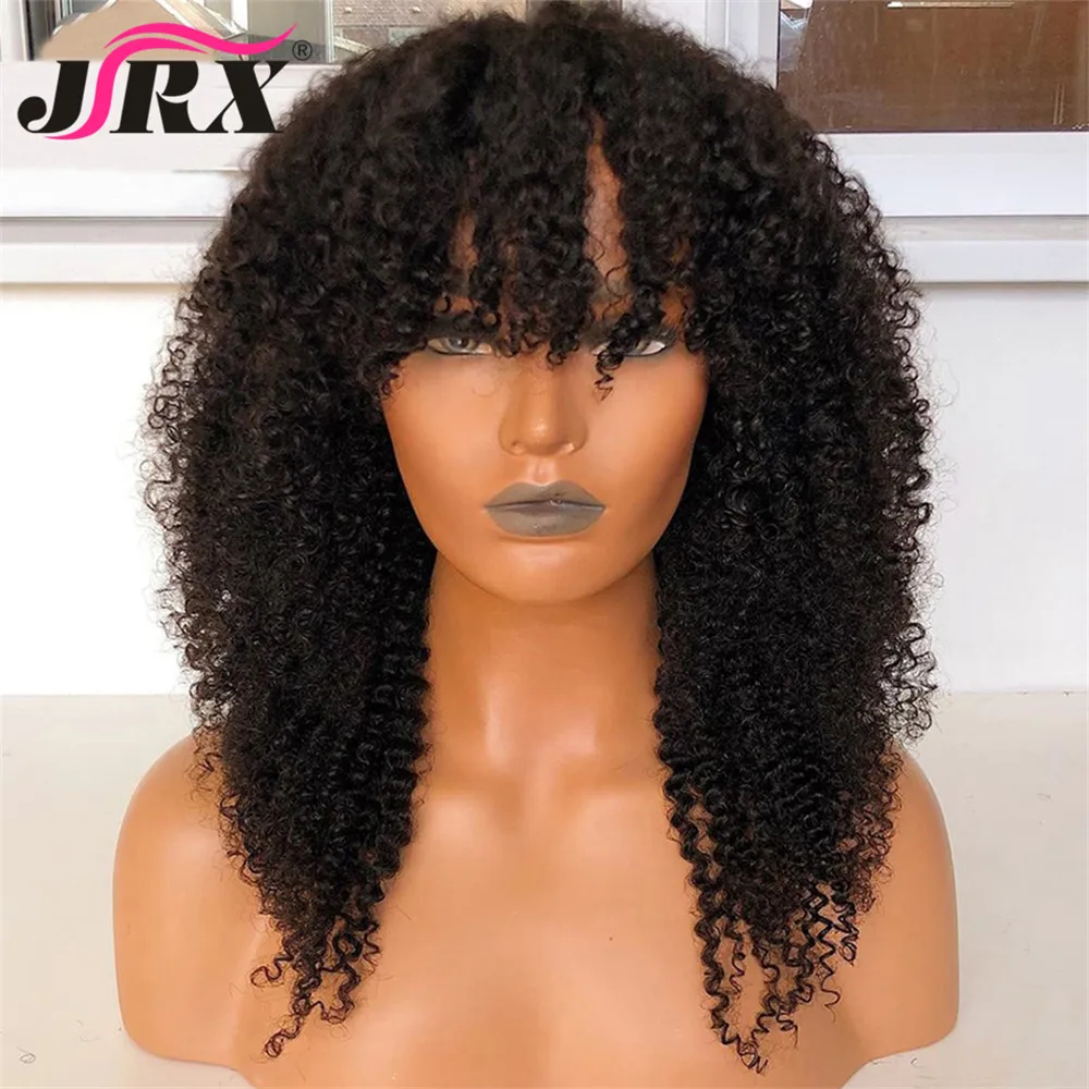 Кудрявые Парики из человеческих волос с челкой, парики полностью ма...