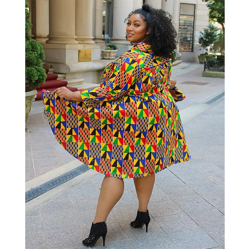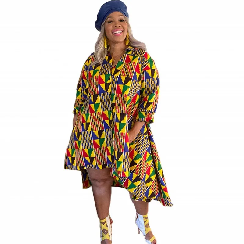 Платье женское асимметричное с геометрическим принтом, свободное платье с длинным рукавом, в африканском стиле, весна 2021