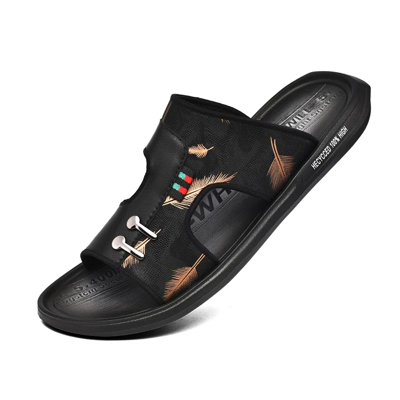 Летние повседневные мужские сандалии; Не скользящие износостойкие тапочки тренд на открытом воздухе легкие пляжные туфли H55