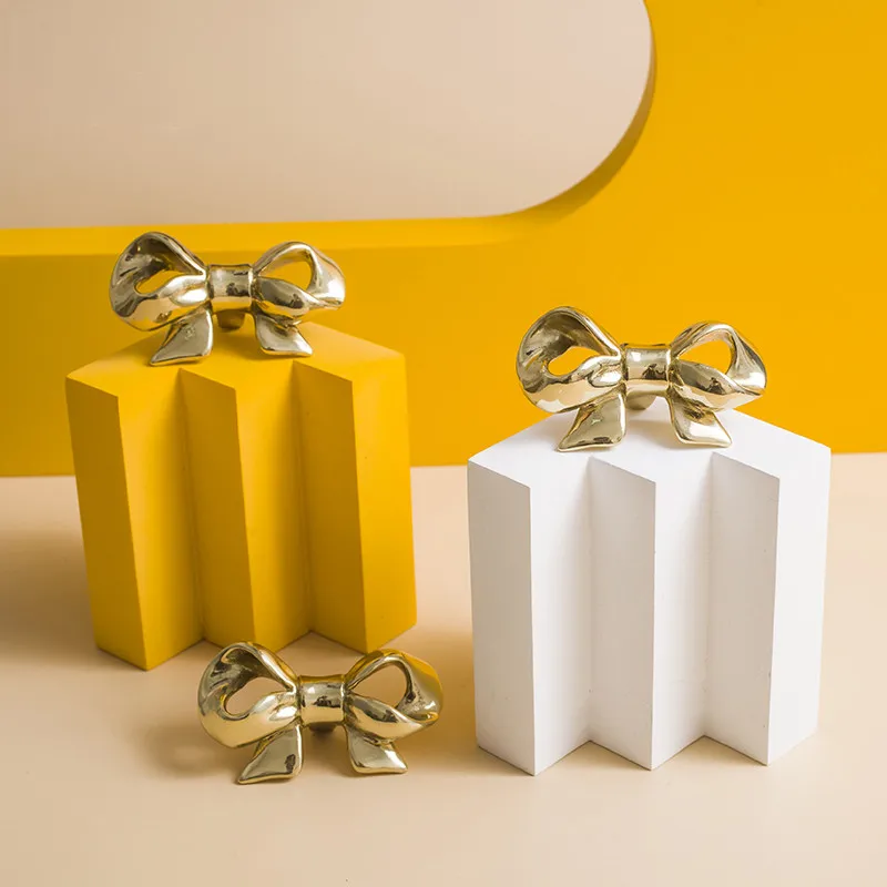 Фурнитура для мебели, золотые латунные ручки с бантом, ручки для сп...