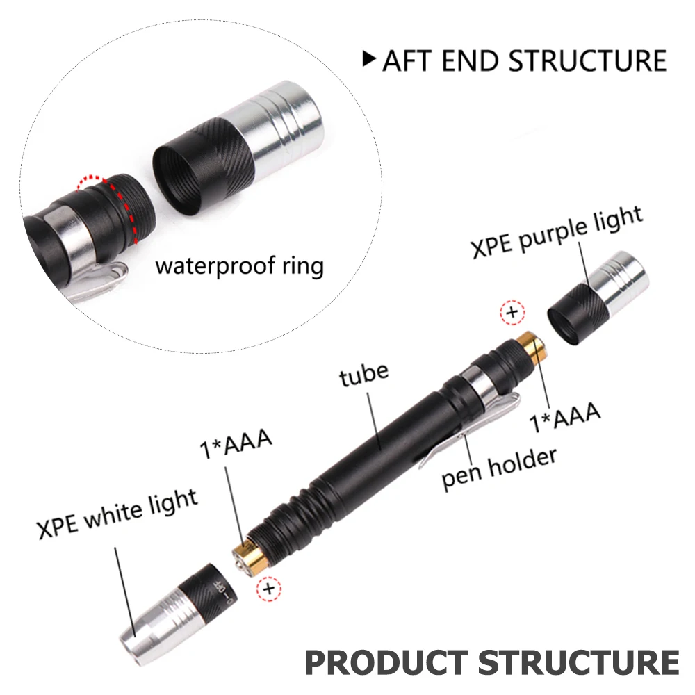 Номер модели2 in 1 Multifunctional Ultra Violet Pen Light White Purple Torch