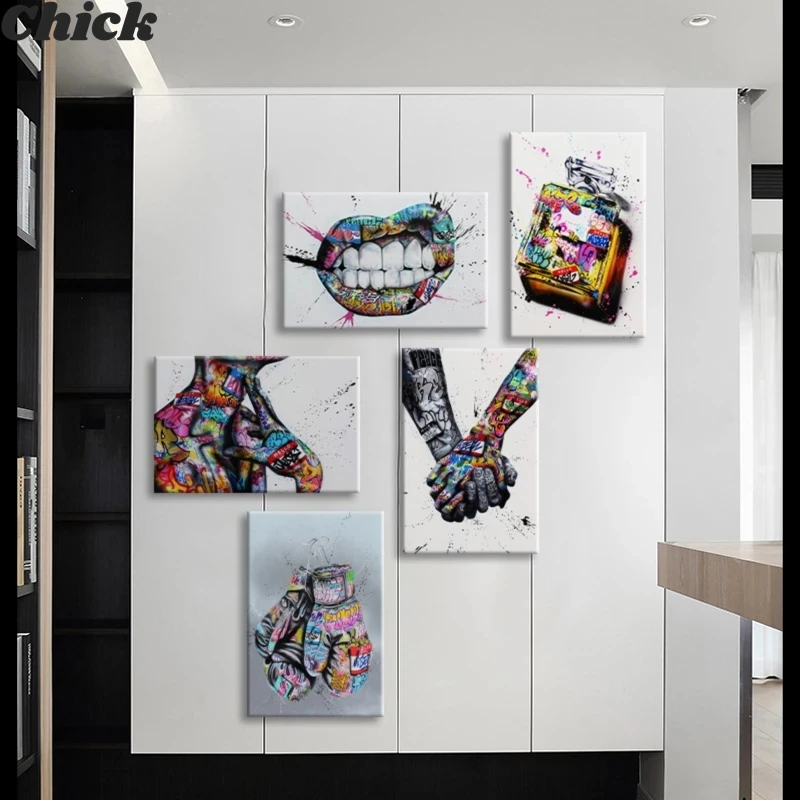 Уличное граффити, Художественная Картина на холсте, любовь, руки, художественные настенные плакаты и принты, губы, парфюм, картина для декора гостиной
