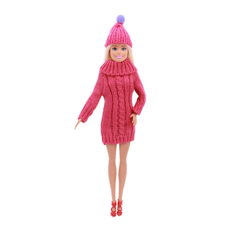 2 шт.лот Бесплатная доставка = 1 свитер + 1Hat ручной работы товары одежда для аксессуары 11,8 дюймов Барби зимняя одежда, для девочек, подарок
