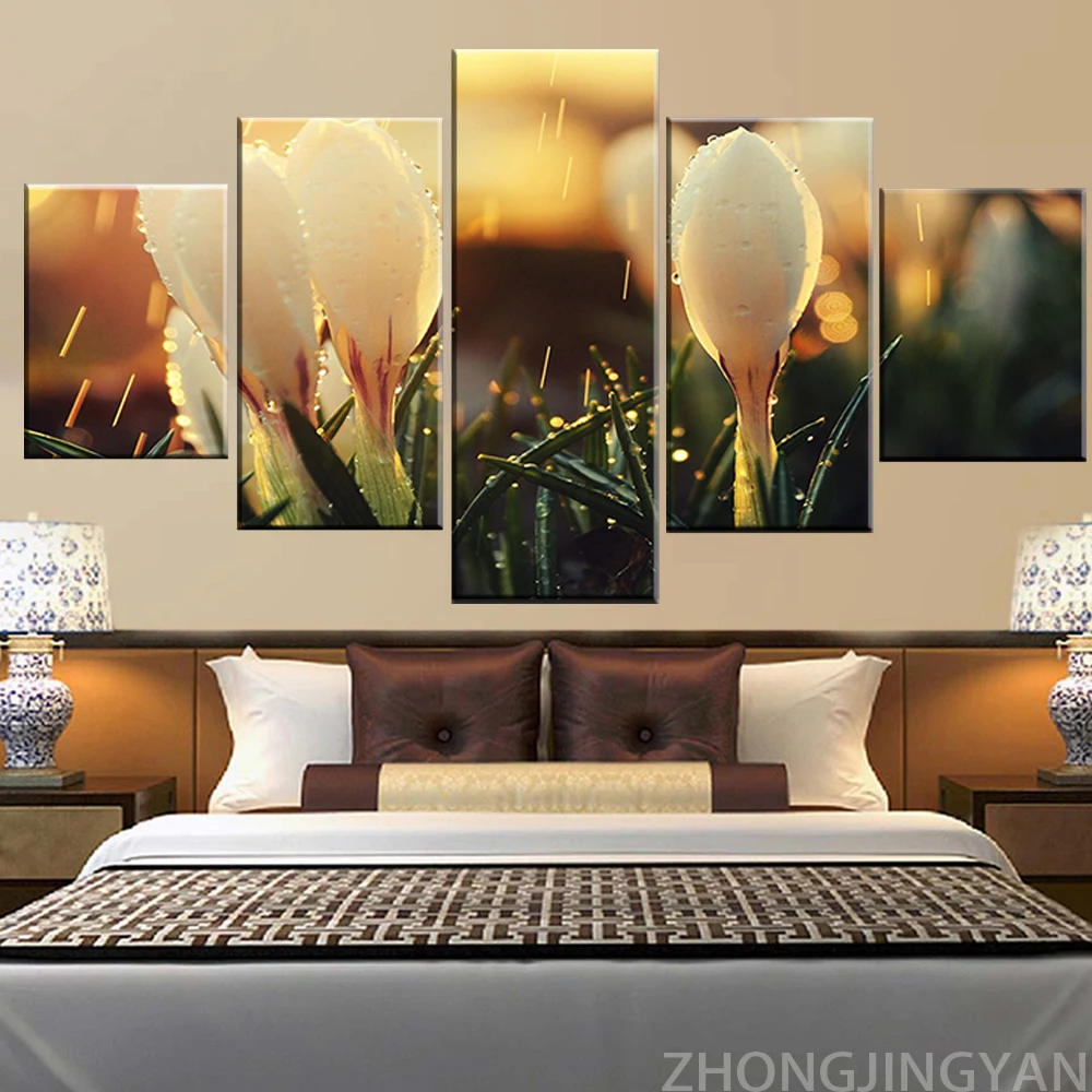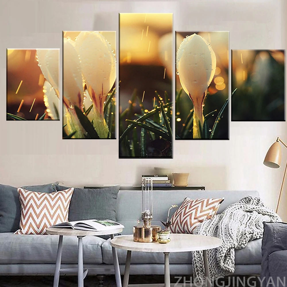 Модульная Картина на холсте, 5 шт., настенное искусство, изящный фон, красивые картины с цветами лилии, Современная Настенная картина, рамка, художественная картина