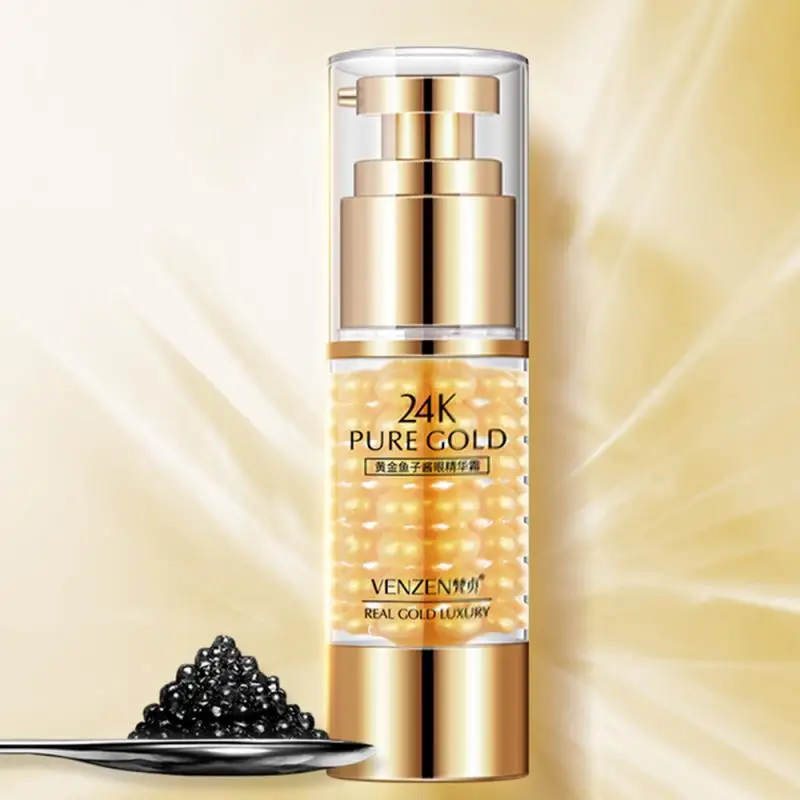 Этот крем для кожи вокруг глаз обогащена с покрытыем цвета чистого 24 каратного золота, гиалуроновая кислота, и икра для надежного крепления Лифт результаты.