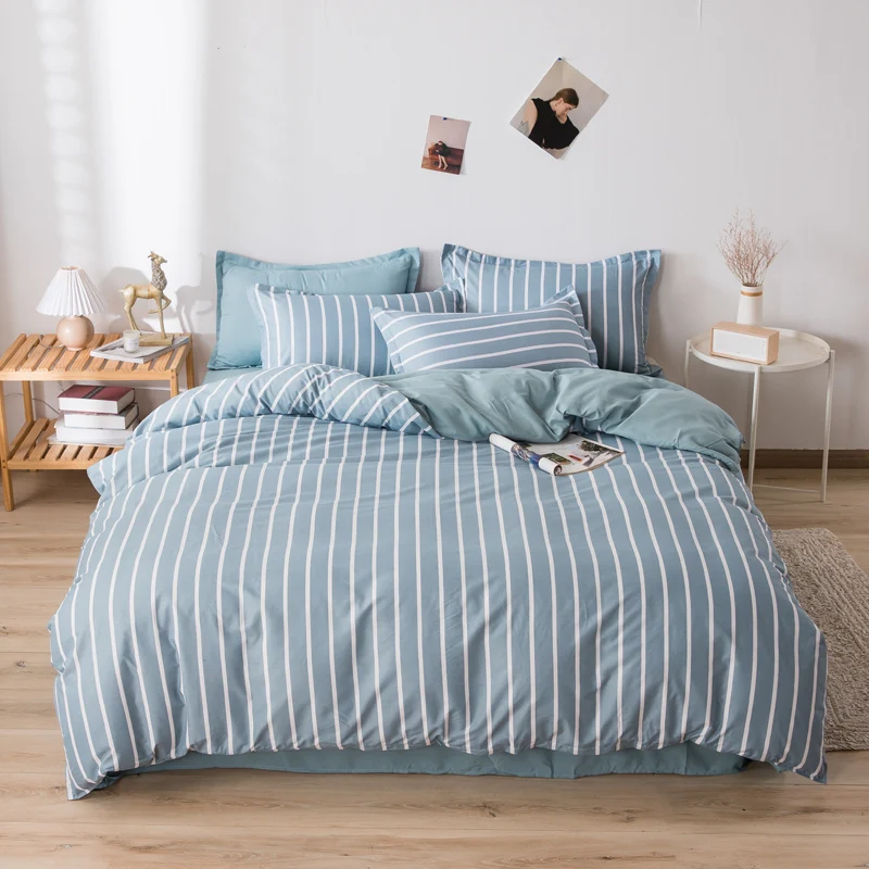 Полосатого рисунка лист пододеяльник Nordic постельные принадлежности Сердце комплект Стёганое одеяло крышки простыня 150 один двойной Queen King 220x240 постельное белье