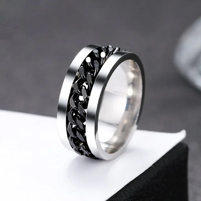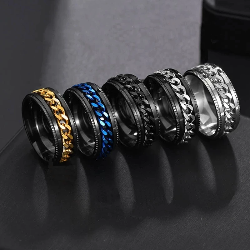 Крутая черная прядильная цепь кольцо для мужчин текстура шин нержавеющая сталь вращающиеся звенья Панк мужской Anel