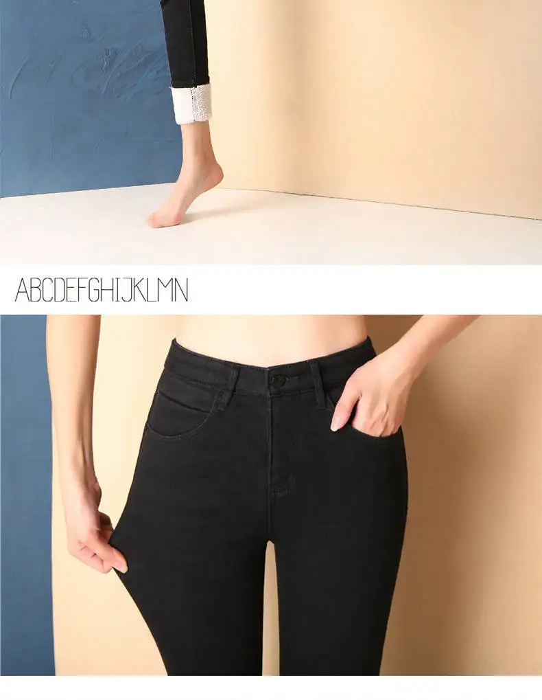 Зимние Утепленные бархатные джинсовые брюки, женские теплые женские брюки 26-34, женские эластичные плотные брюки с высокой талией из плюша