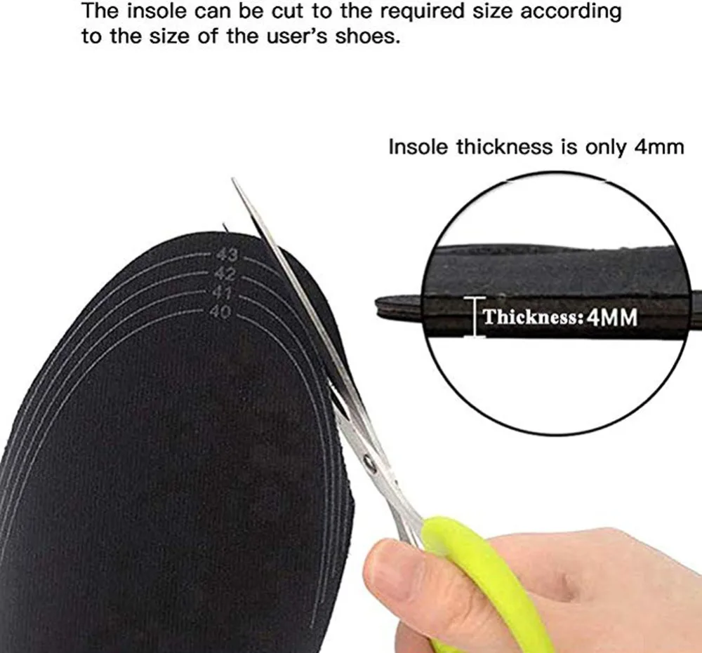 Особенности:Высокая эффективность преобразования, энергосбережение, средний час с одной степенью электричества.Легко отрезать размер, который вам нужен.Подходит для различных типов обуви.Сделайте вашу ногу более удобной и теплой.