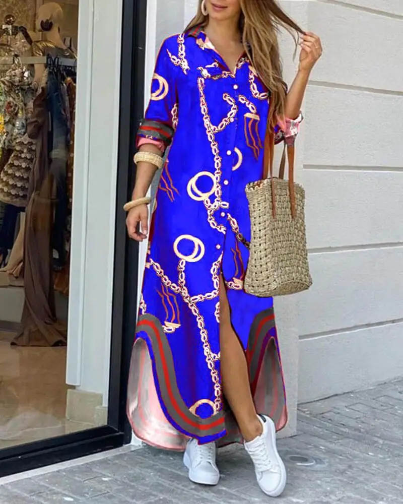 Новинка 2020, женское модное платье-рубашка на пуговицах, женское повседневное длинное уличное Платье с принтом, свободное домашнее платье большого размера