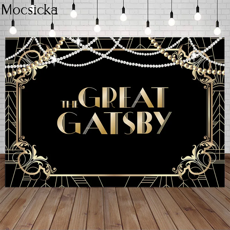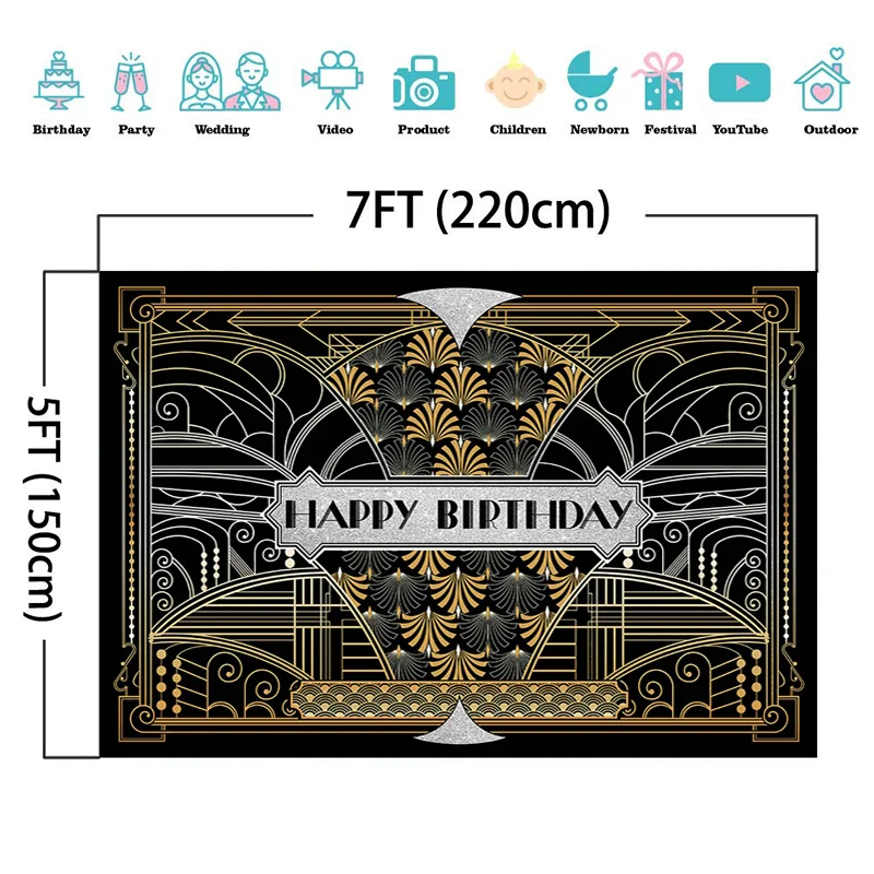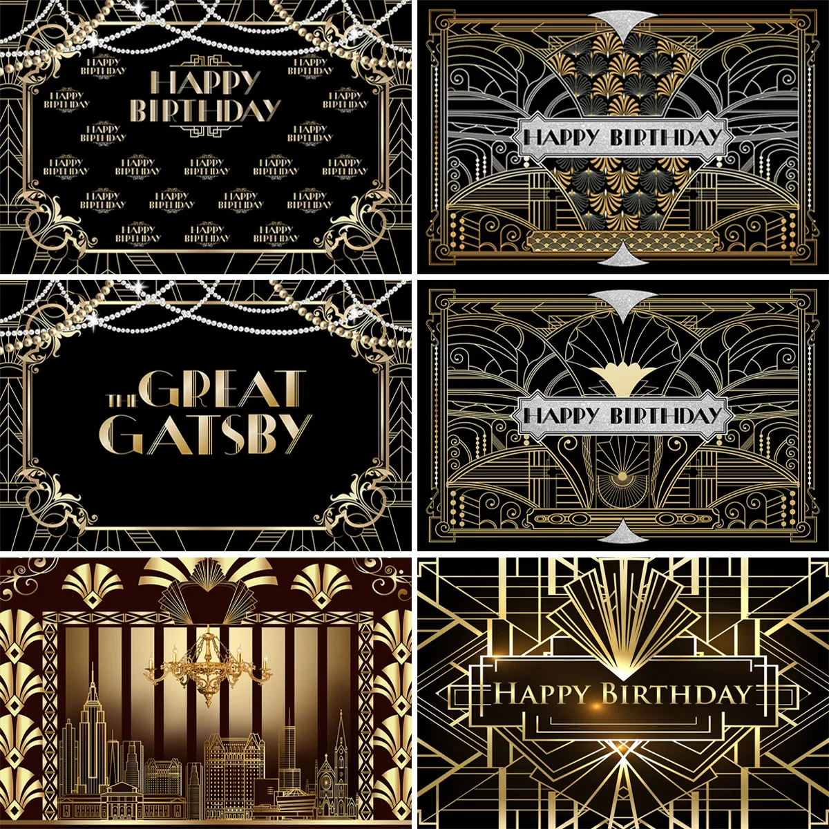 Великий Гэтсби тематическая вечеринка на день рождения фон для фотосъемки с изображением черного и золотого цвета линии по индивидуальному заказу украшения для вечеринок по случаю Дня Рождения фонов баннер