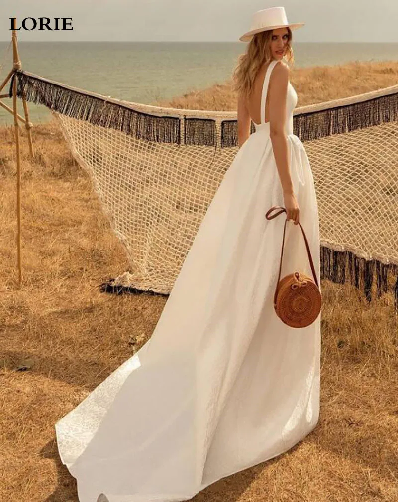 Простое и чистое пляжное свадебное платье LORIE, трапециевидные платья невесты в стиле бохо, атласные свадебные платья принцессы