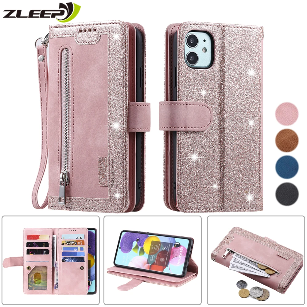 Чехол на молнии для iPhone 13, 12, Mini, 11 Pro, XS Max, XR, X, 6, 6s, 7, 8 Plus, SE, 2020 дюйма, кожаный флип-кошелек для карт, противоударный чехол для телефона