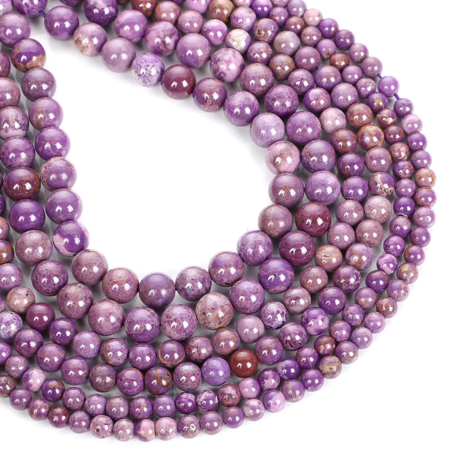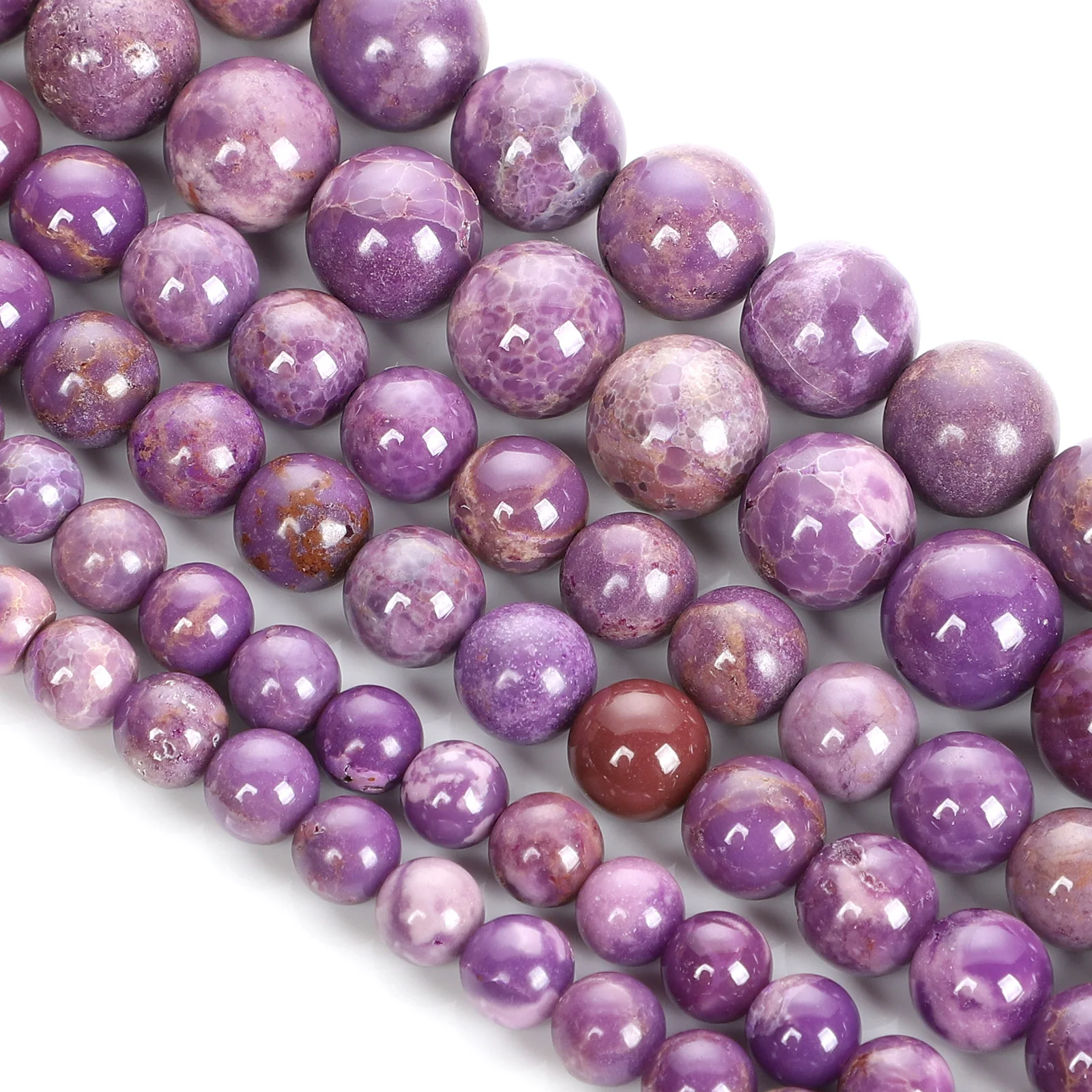 Бусины из натурального камня, фиолетовая слюда, круглые бусины росс...