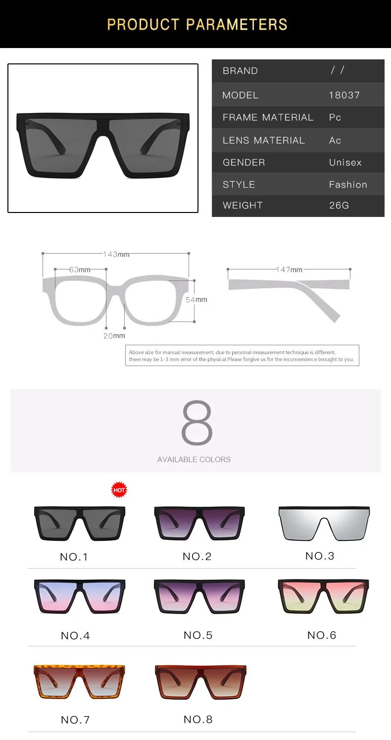 Солнцезащитные очки унисекс, квадратные, крупные, с плоским верхом