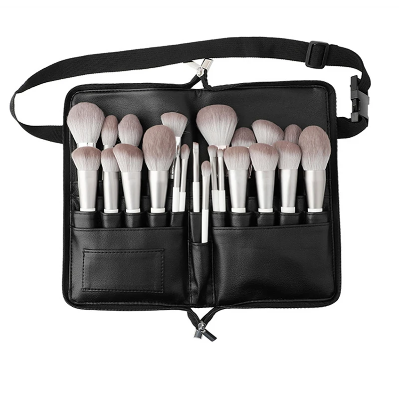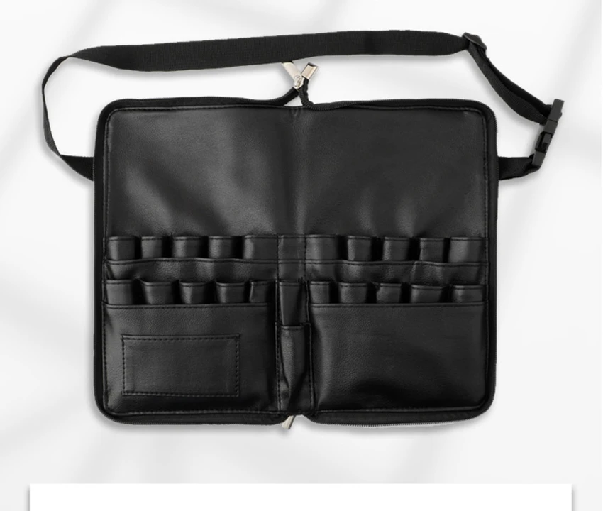 Многофункциональная вместительная черная косметичка из искусственной кожи, поясной кошелек, сумочка для кистей для макияжа с ремнем для профессионального визажиста