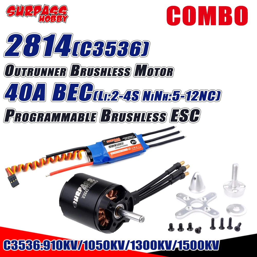 Бесщеточный двигатель SURPASS HOBBY 2814 Outrunner C3536 40A, бесщеточный ESC Li:2-4S для радиоуправляемого самолета, планера с фиксированным крылом, дрона Warbirds