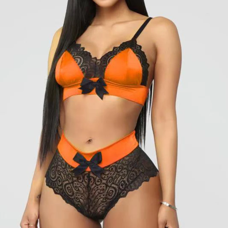 Кружевной комплект женского эротического нижнего белья, черные атла...