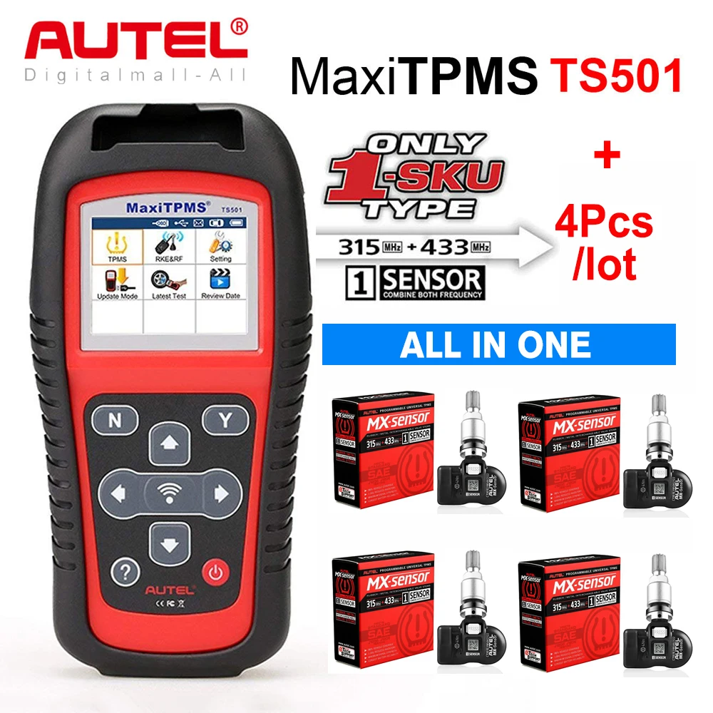 Инструменты для ремонта шин Autel TPMS 2 в 1, датчик TPMS, Поддержка программирования с TS501, TS508, равный 433 МГц + 315 МГц