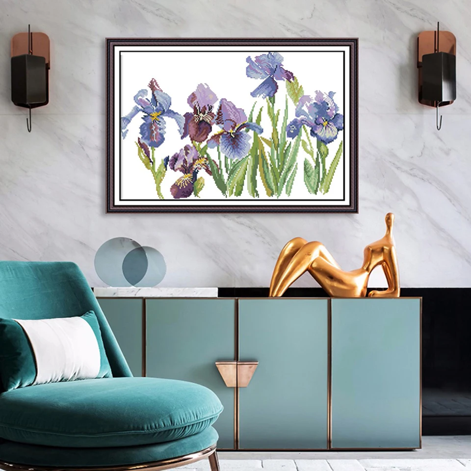 Красивые китайские наборы для вышивки крестиком с фиолетовыми цветами, экологичный хлопковый штампованный набивной рисунок 11CT, простое в использовании украшение для дома сделай сам