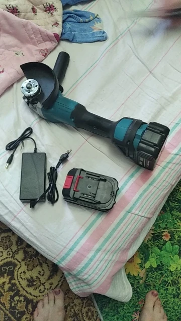 Подозреваю, что это подделка под Drillpro. 1 - на самой болгарке нет фирменной таблички и нигде её не, на коробке даже не было надписей. 2 - самая ЛАЖА - это блок питания - невесомое изделие с лампочкой, которая меняет цвет на зелёный с красного, типа "если заряжен". По надписи, должен выдавать ток 1,5 А, а реально уже при токе 56 мА (в 26 раз меньше заявленного) уходит в защиту. Хоть не сгорел... Пальцы внутри аккума стоят самые простые, на 1500 мАч, но при желании можно перебрать и поставить приличные например на 3000 или 3500. Сама болгарка гремит довольно громко, хотя редуктор пересмазал (смазка в нём была, но мало), но на большой скорости режет хорошо (диском толщиной 1 мм калёный стальной палец диаметром 6 мм - секунды 2). Сколько проработает - не знаю, если быстро загнётся - дополню отзыв.