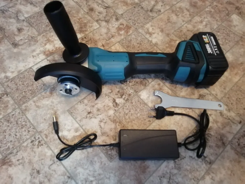 Болгарка неплохая (за эти деньги). Скорость маловата, что-то тяжёлое пилить ей не стоит. Для сайдинга пойдет. В редукторе ооооочень мало смазки, после покупки ОБЯЗАТЕЛЬНО добавьте, дело 3 минут. Аккумуляторы пришли полузаряженые, один из них с расколотым корпусом. Придется разбирать и залить эпоксидом.
