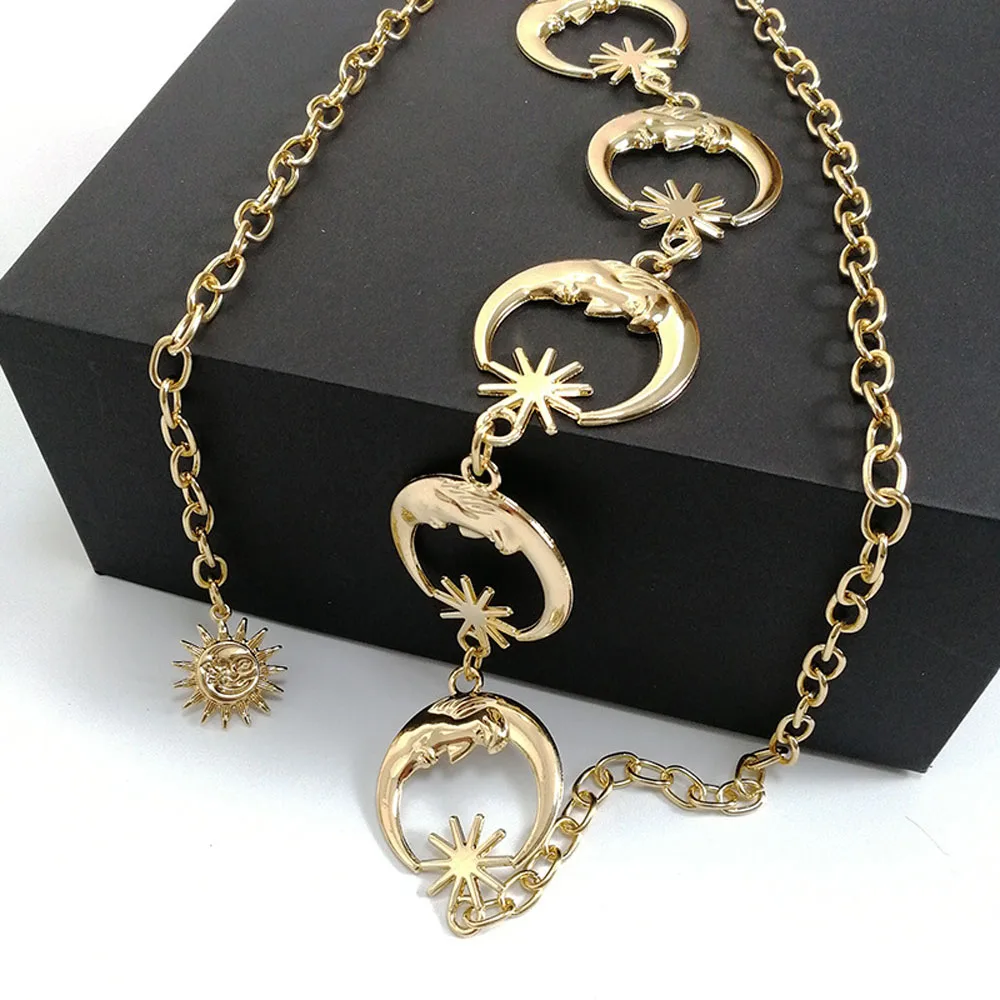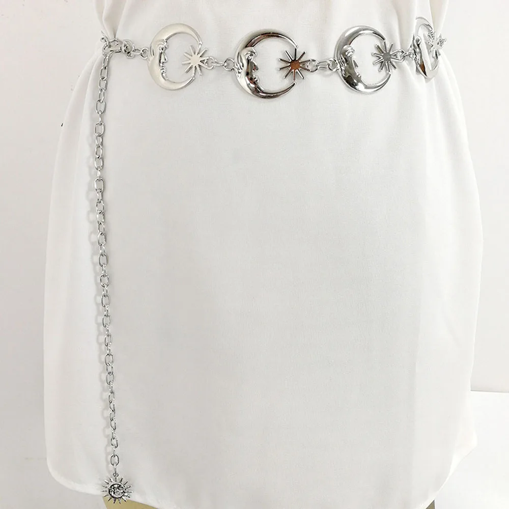 Ремень в стиле Харадзюку Женский, винтажный серебряная подвеска металлический пояс в стиле панклуна, с цепочкойсолнцем