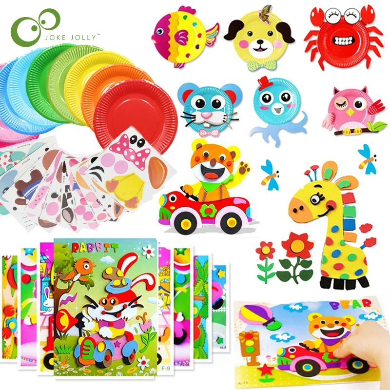 7 шт. детские 3D DIY игрушки ручной работы 2 бумажные тарелки Стикеры материал 5 эва стикер дети детский сад Искусство ремесло обучающие игрушки