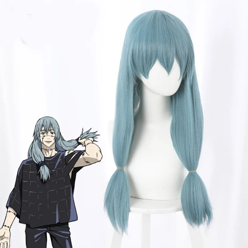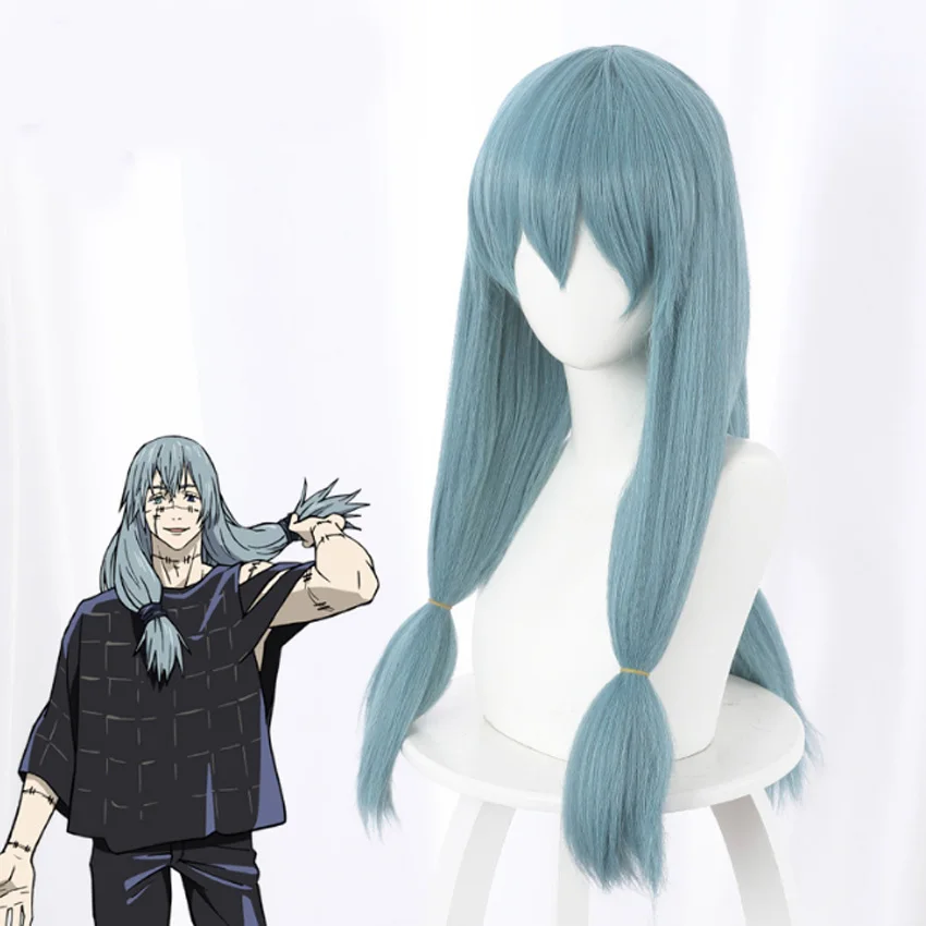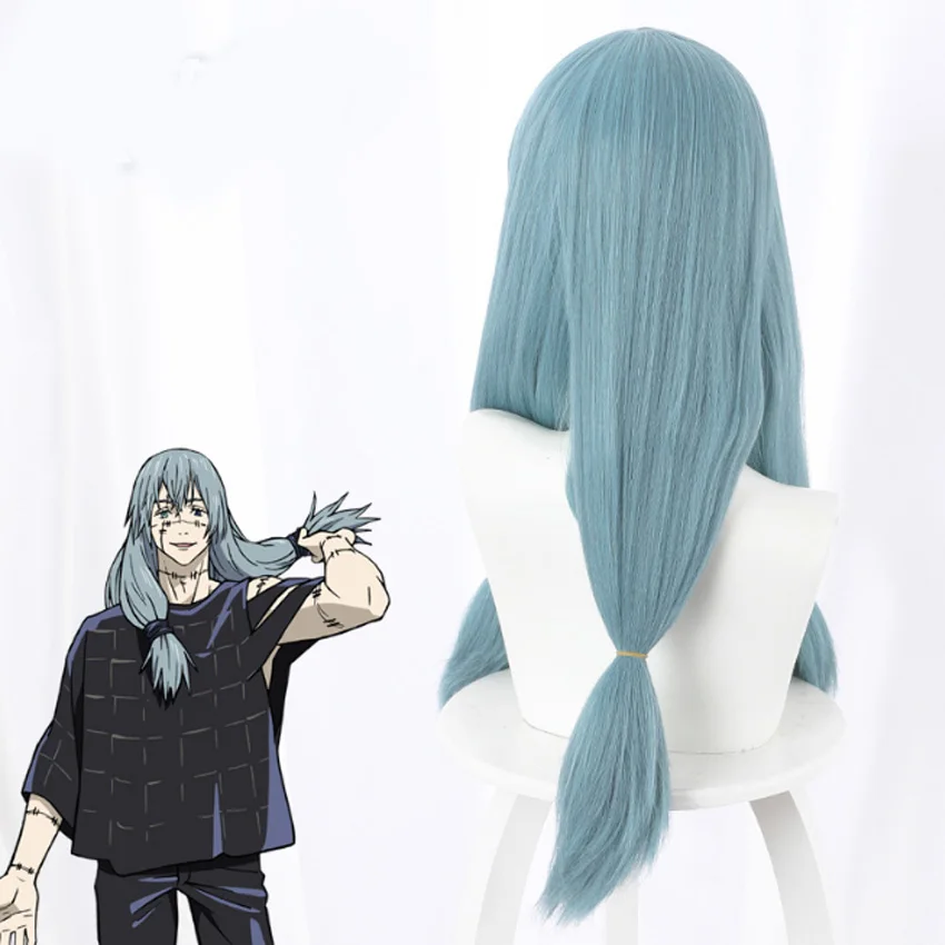 Jujutsu кайсен махито парик для косплея синий термостойкие синтетические волосы двойной костюм с тесьмой парик + парик Кепки