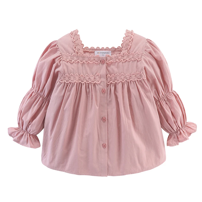 Хлопковая блузка для девочек, на пуговицах, с длинным рукавом