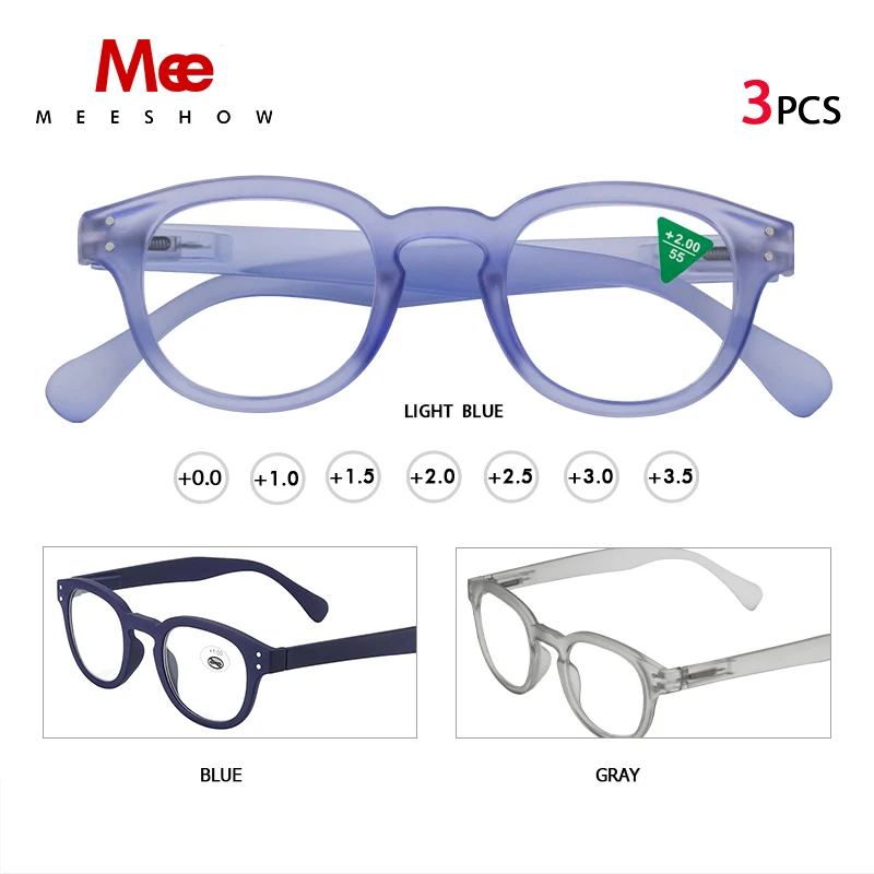 Очки для чтения мужские и женские Meeshow, в стиле ретро, с диоптриями смешанных цветов, 3 упаковки, 1513