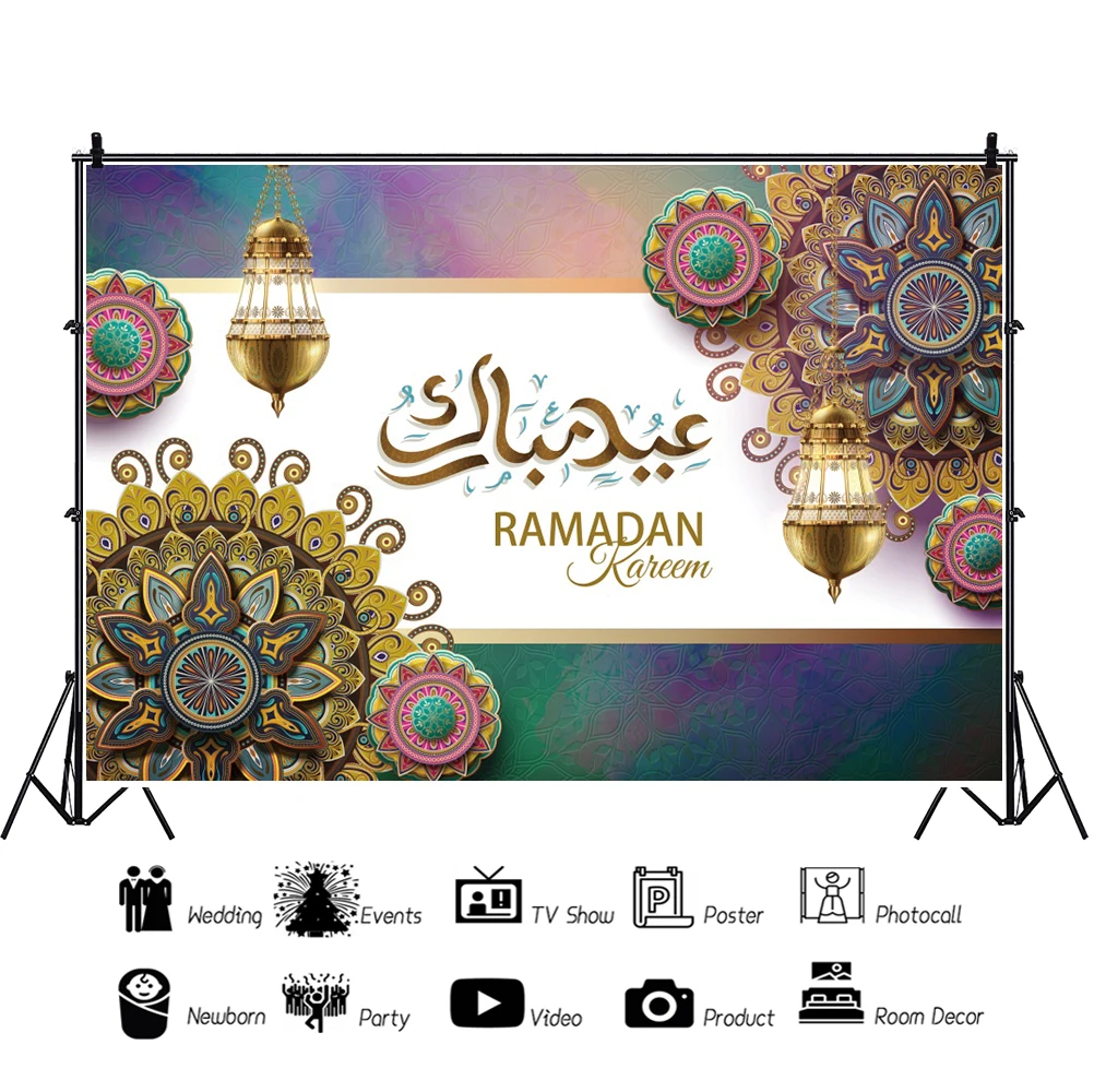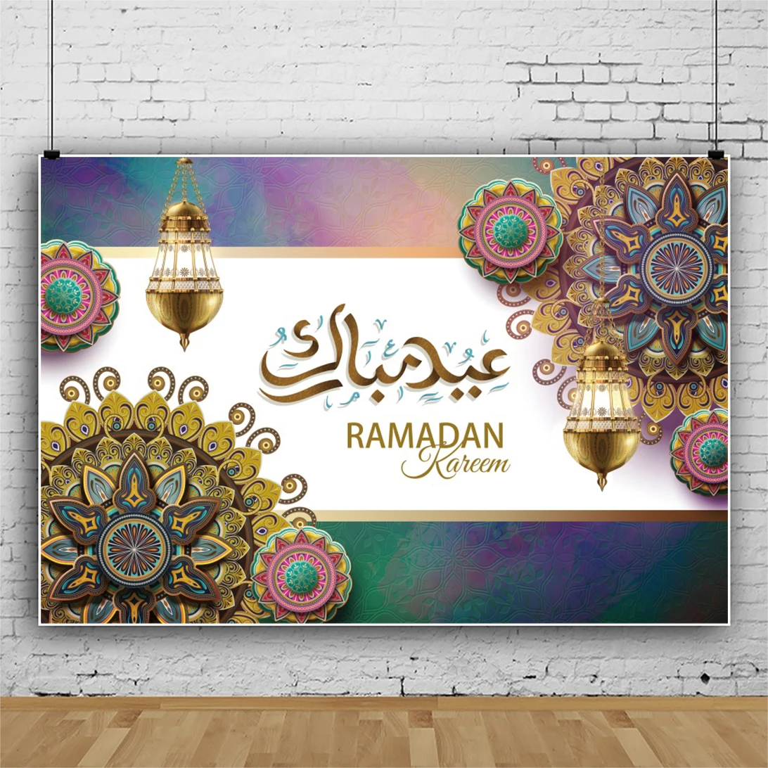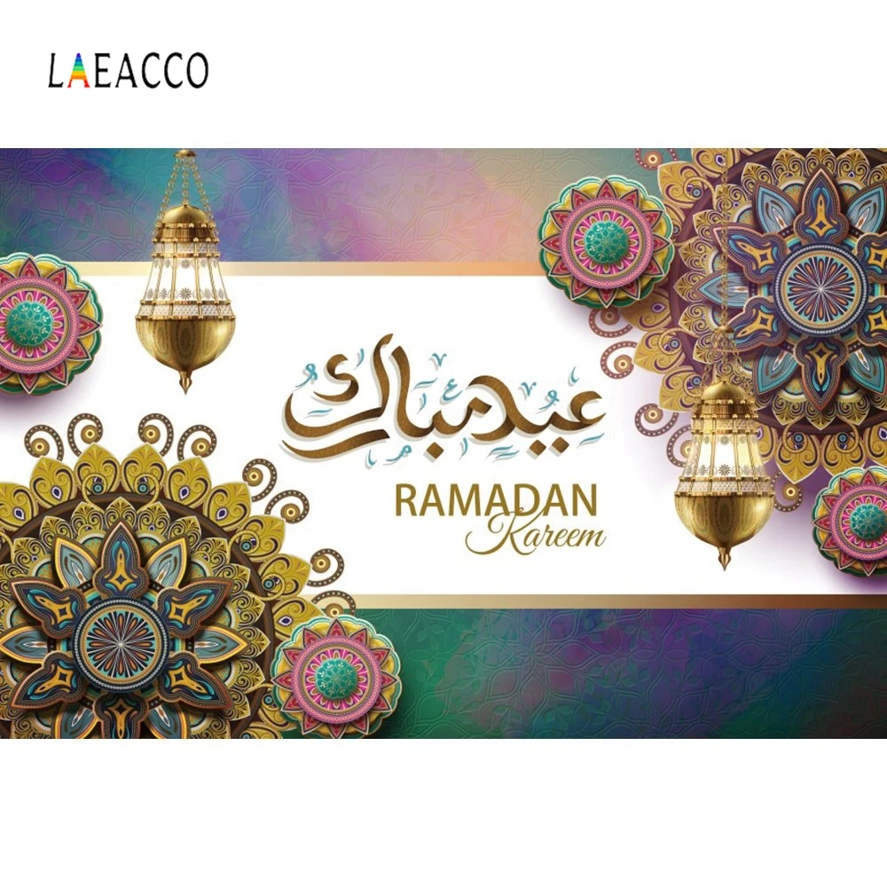 Laeacco Eid Mubarak Рамадан кареем фотографии фоны ислам цветы светильник градиентные цвета фото фоны для фотостудии