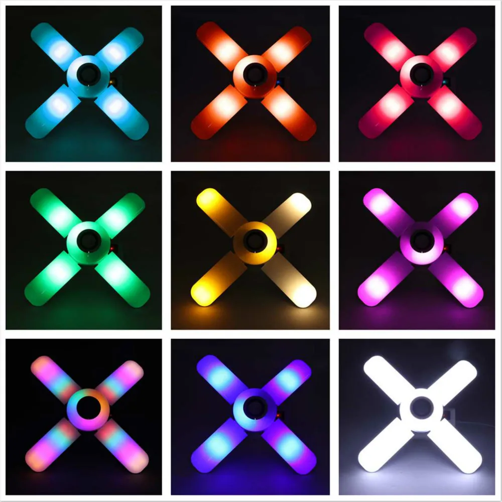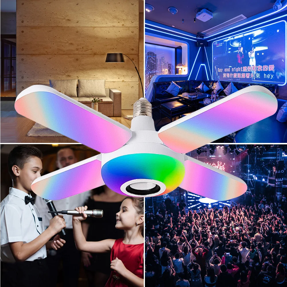 RGB Bluetooth музыкальный светильник 50 Вт Складная Светодиодная лампа с дистанционным управлением Смарт 4 листа E27 держатель лампы мерцающий для вечерние