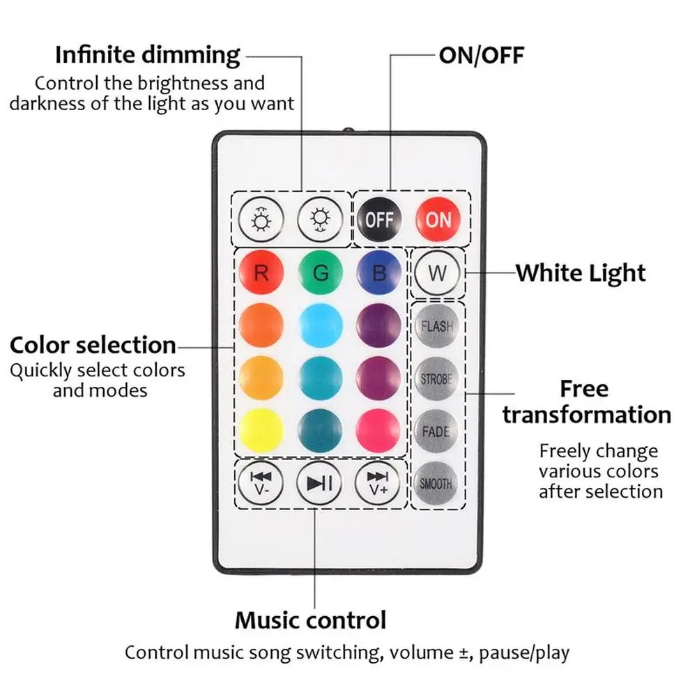 * 2. Режим прослушивания музыки: bluetooth-соединение позволяет воспроизводить музыку на вашем телефоне, а светильник танцует под музыку, показывая незабываемые ночи для семьи или друзей.