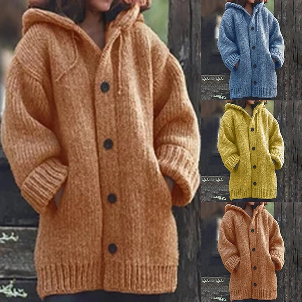 Новый женский кардиган, свитер, пальто, теплый свитер, пальто, свободное шерстяное вязаное пальто, осенне-зимний женский длинный кардиган с капюшоном оверсайз