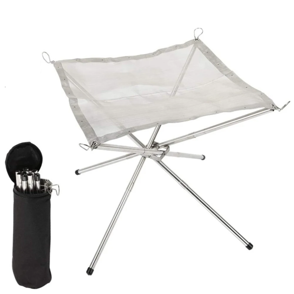 Туристическая костра из нержавеющей стали, практичная многофункциональная прочная подставка для огня, складная сетчатая яма