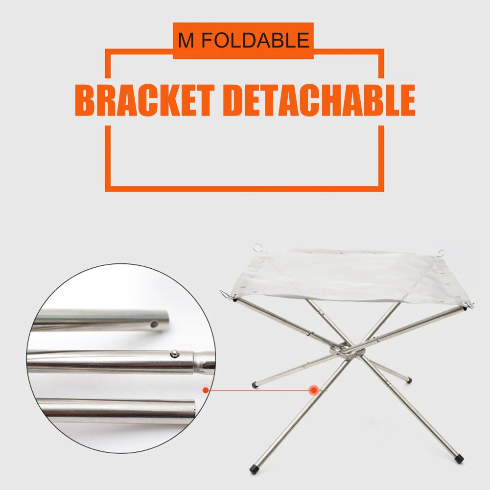 Нержавеющая Сталь Открытый Кемпинг Пешие прогулки водная сторона барбекю костра дровяной печи огнеупорная рама стойка СкладнаяРазборкаСадовый двор нагревательная сетка пожарная яма