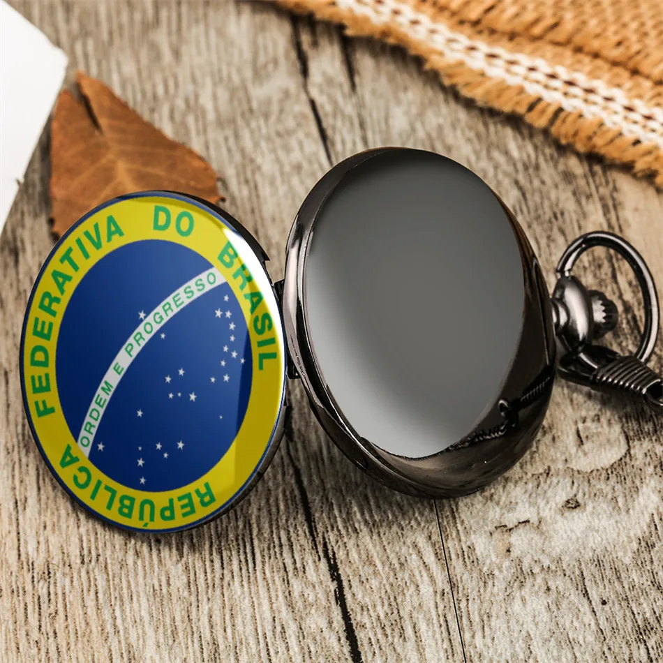 Часы наручные с рисунком флага Бразилии, кварцевые карманные ретро-часы с гладкой черной подвеской, сувенирные антикварные Подарочные для мужчин и женщин