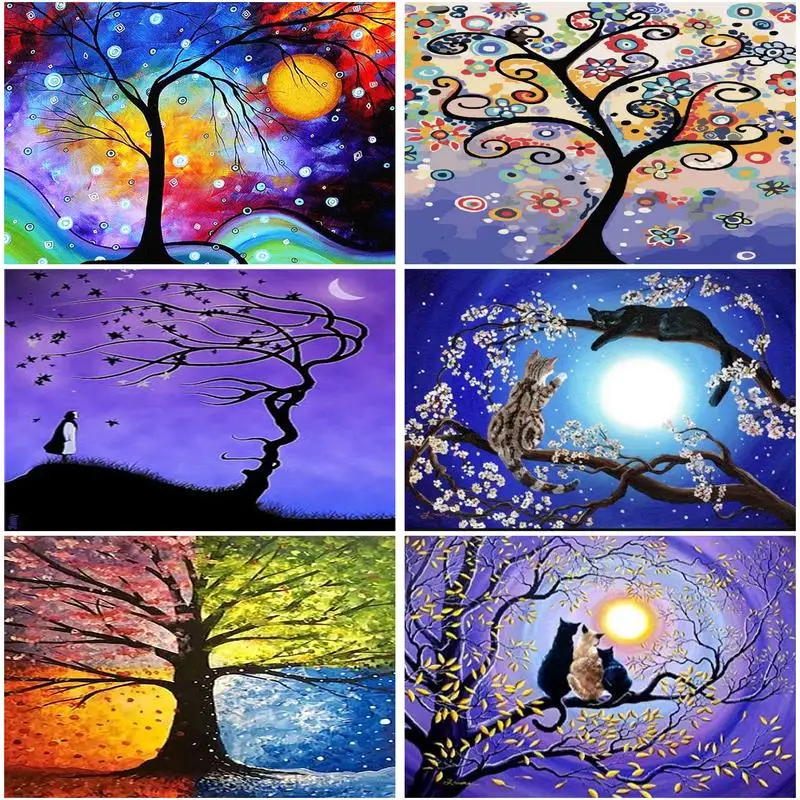 Квадратная алмазная живопись RUOPOTY, абстрактное дерево 5D, алмазная вышивка сделай сам, мозаика, ландшафт, искусство, искусство