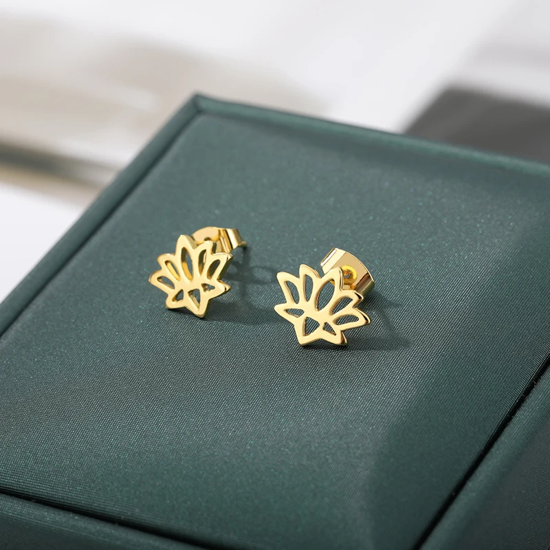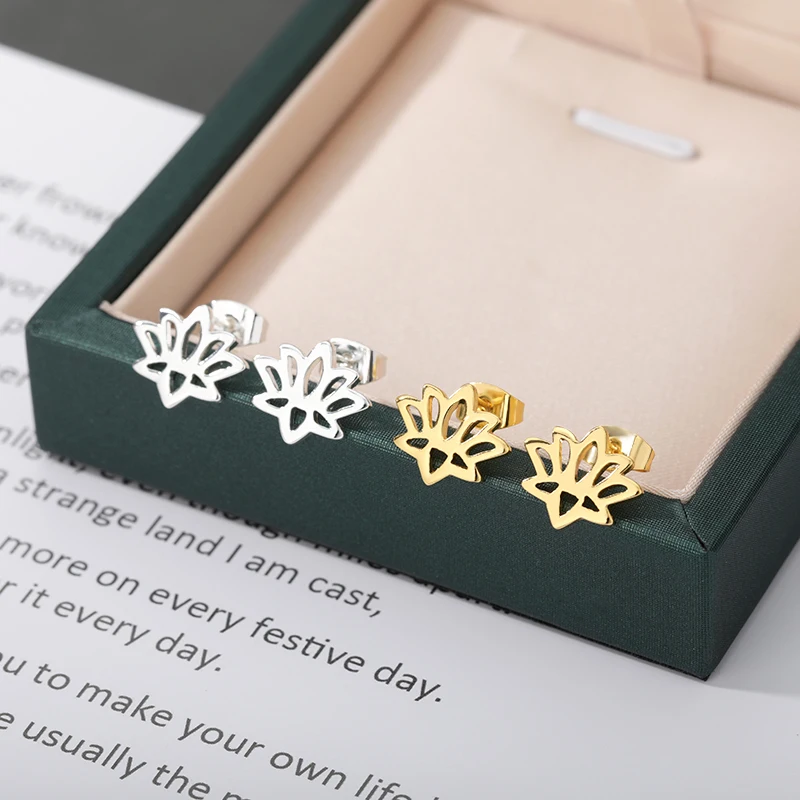ICFTZWE цветок розы лотоса маленькие Изящные Простые серьги-гвоздики в виде дерева для женщин и девочек из нержавеющей стали мини серьги-гвоздики ювелирное изделие подарок новинка