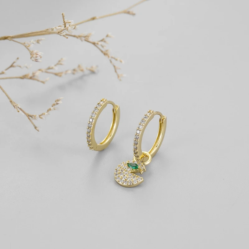 Серьги-кольца женские из стерлингового серебра 925 пробы с цирконие...