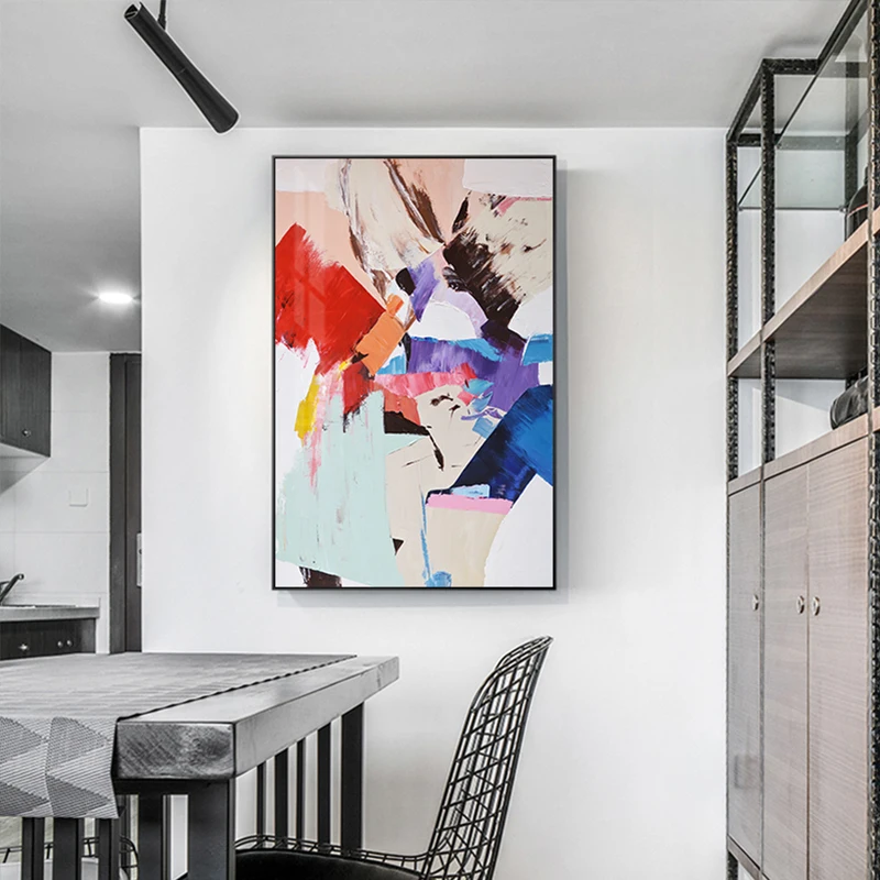 Красочная Геометрическая абстрактная живопись, современный холст, п...