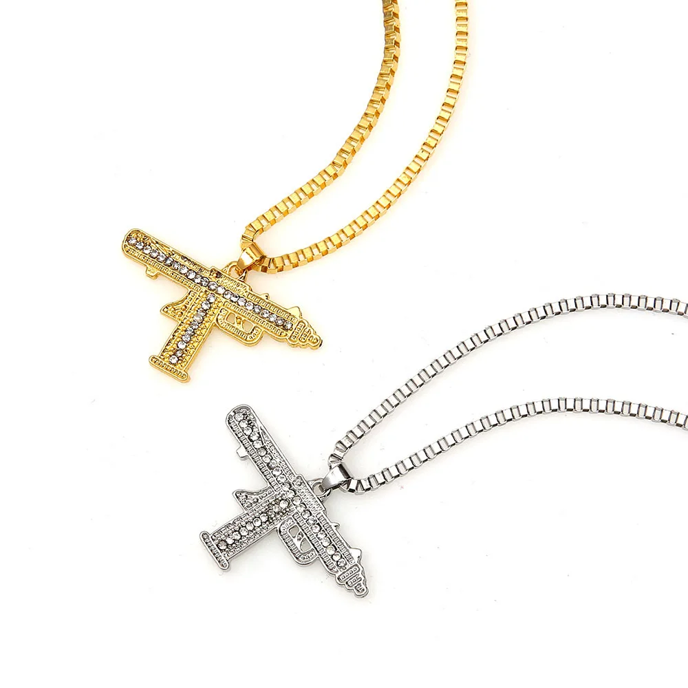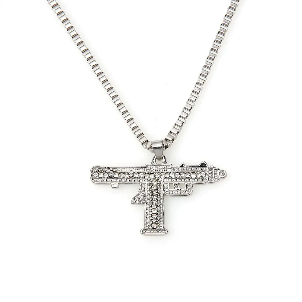 Панк Хип-хоп Циркон пистолет ожерелье Личность креативный пистолет кулон ожерелье производитель оптовая продажа