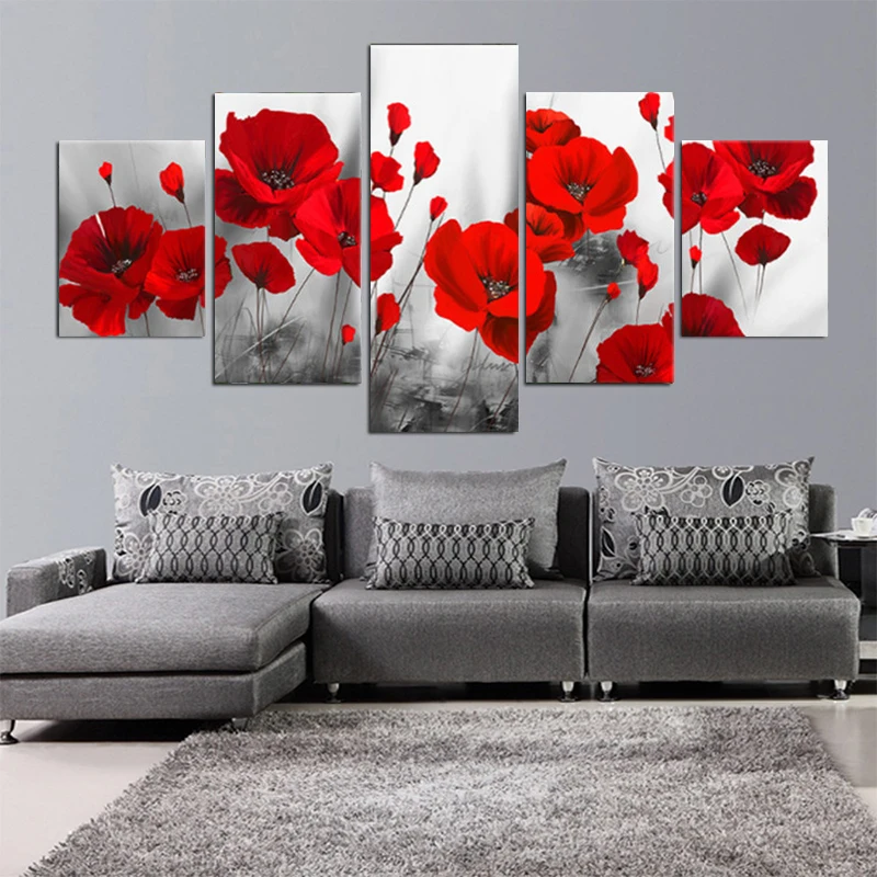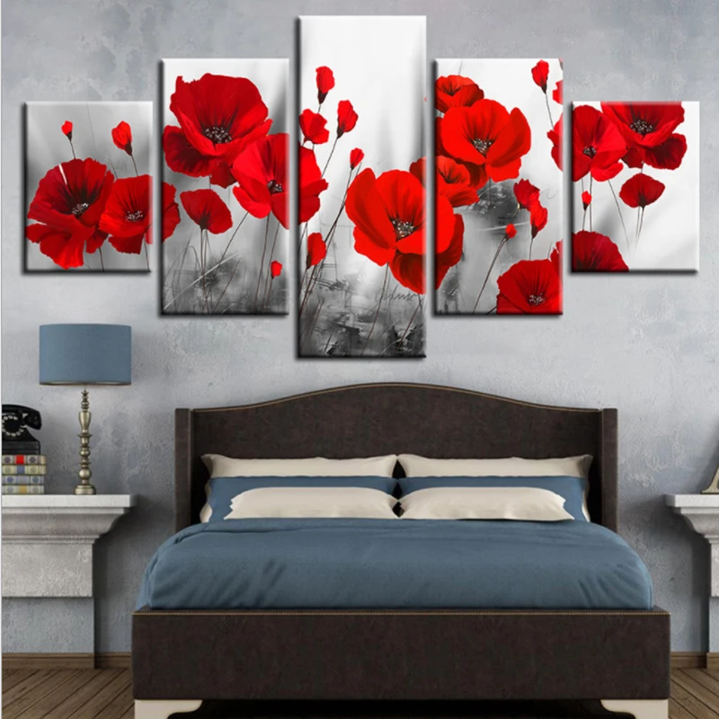 5 шт. Nordic Красный мак Арт холст Картина модульная печать высокой четкости фотографий Роза плакат стены украшения дома без оправы
